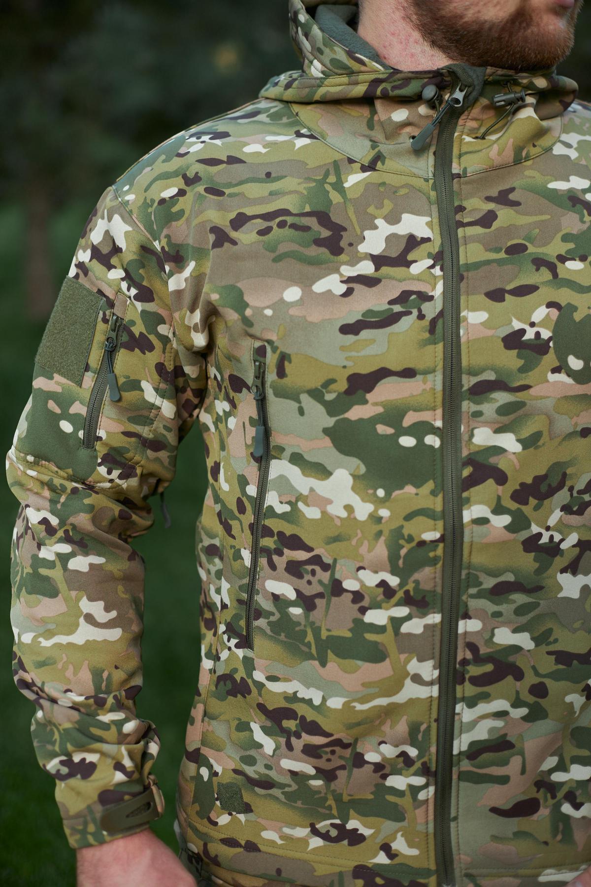 Тактична куртка Soft Shell у кольорі Мультикам створена для тих, хто цінує функціональність, витривалість та зручність. Виготовлена з водовідштовхувальної тканини Soft Shell, вона забезпечує захист від мілкого дощу, поривів вітру та мокрого снігу, зберігаючи тепло завдяки приємній флісовій підкладці.